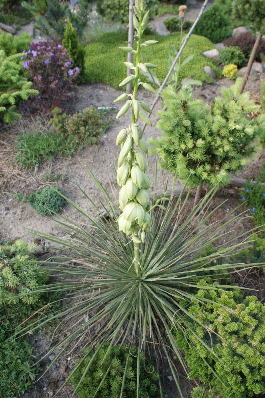 To najbardziej przypominająca typ juki sinej roślina w moim ogrodzie i jak znajdę fotografię z kwiatem to jeszcze wkleję.