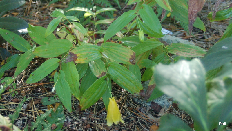 Tricyrtis hirta , czyli trójsklepki owłosione rosną w mocnym cieniu pod sosnami, ale jednocześnie pod betonowym płotem, który kumuluje ciepło. Gleba jest tu żyzna, mocno wzbogacona kompostem liściowym i wilgotna.
