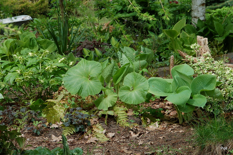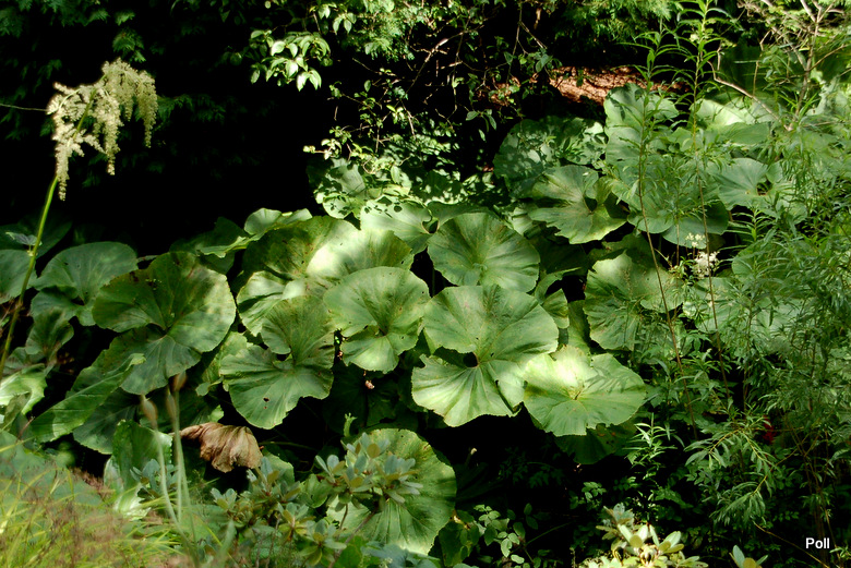 Ok.150 cm wysokości, przy podobnej rozpiętości - taką wielkość potrafi osiągnąć lepiężnik japoński , jeśli ma zapewnione warunki, jakie lubi:
