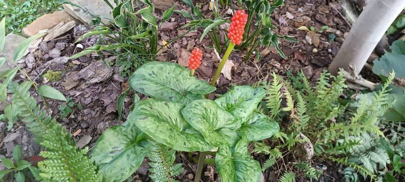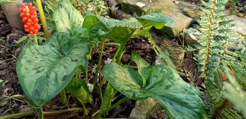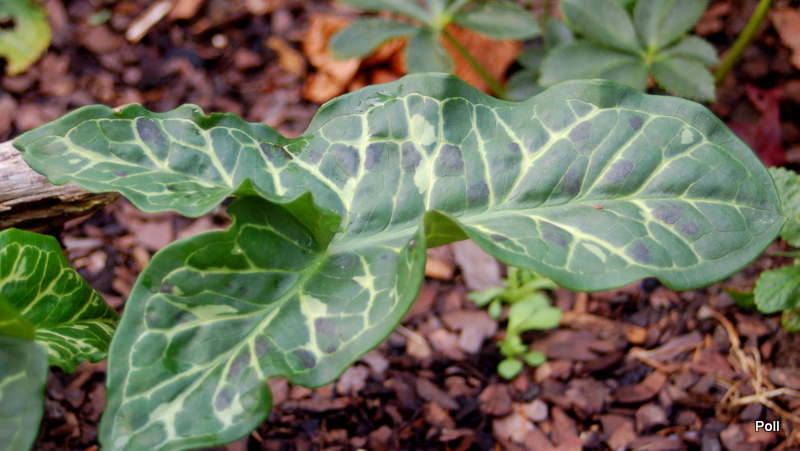Wiosną sprowadziłam do ogrodu kilka odmian obrazków- zawsze podobały mi się te ciekawie wybarwione liście, ale ciężko znaleźć w handlu interesujące odmiany. Najczęściej są one przekazywane między kolekcjonerami na zasadzie wymiany, czasem tylko można natknąć się w szkółkach na ich śladowe ilości.Tak właśnie trafiło do mnie kilka form obrazków np Arum 'Thunderbolt and Lightning' o ciemnych kropkach na liściach i jasnych żyłkach nerwów.