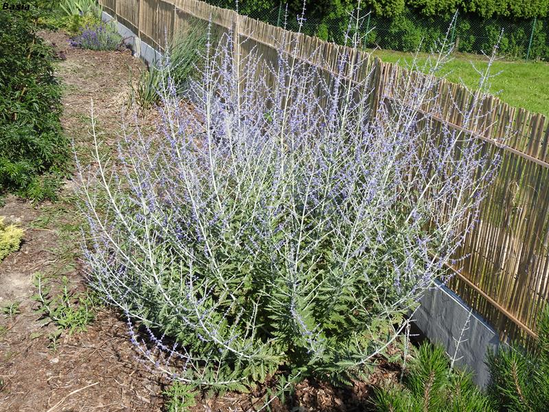Perowskia łobodolistna 'Blue Spire' na mojej alejce różanej. W miarę upływu sezonu, rozkłada się dość szeroko.