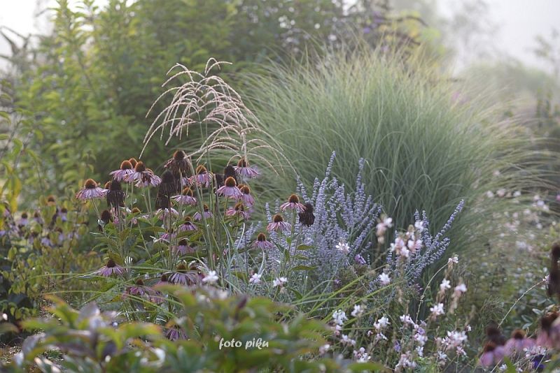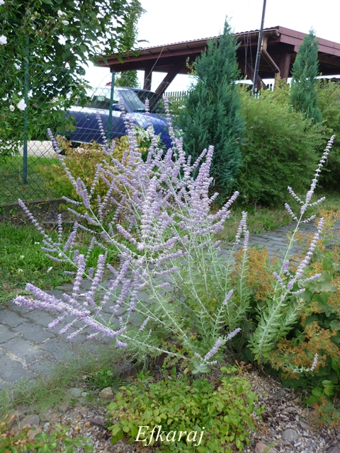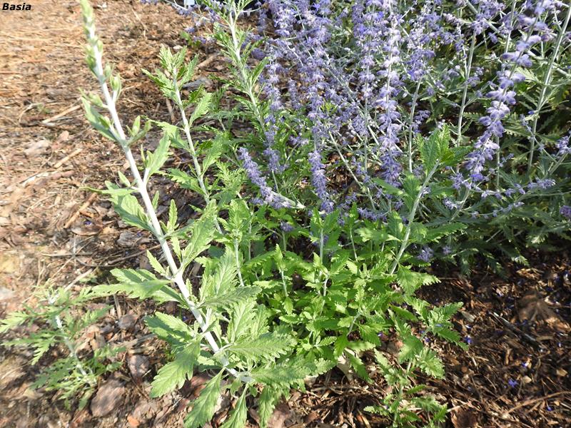 Perowskia łobodolistna 'Blue Spire' na mojej alejce różanej. W miarę upływu sezonu, rozkłada się dość szeroko.