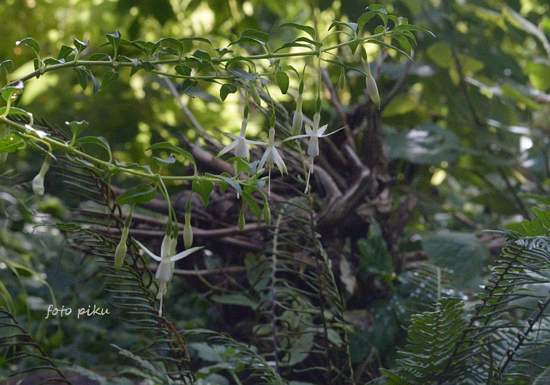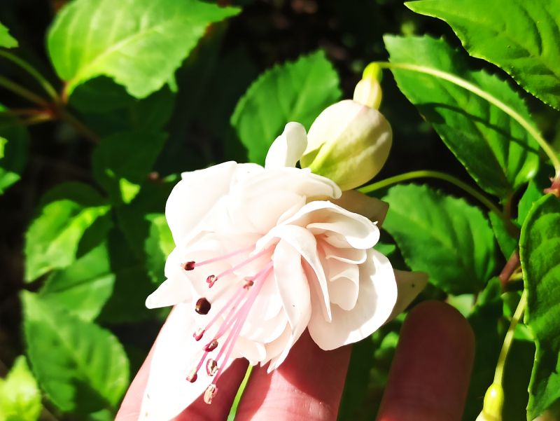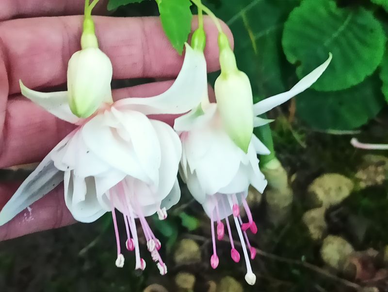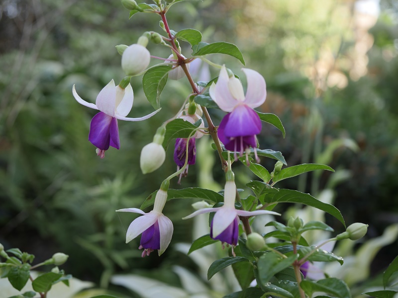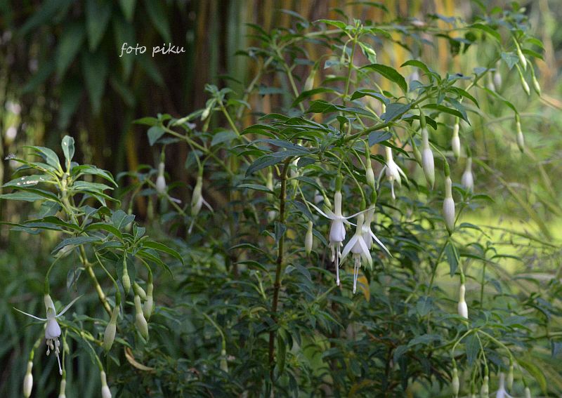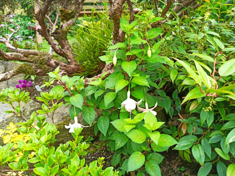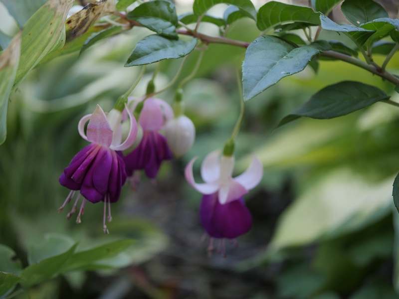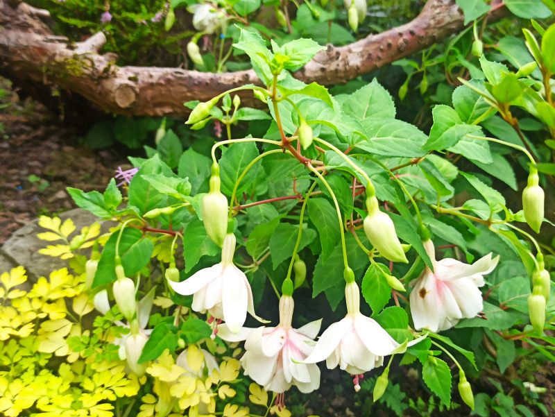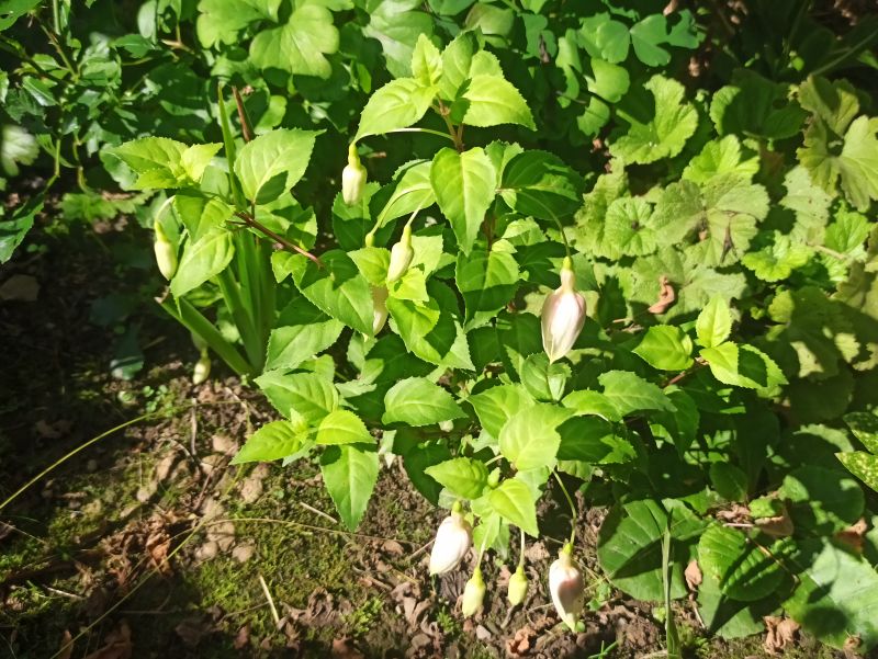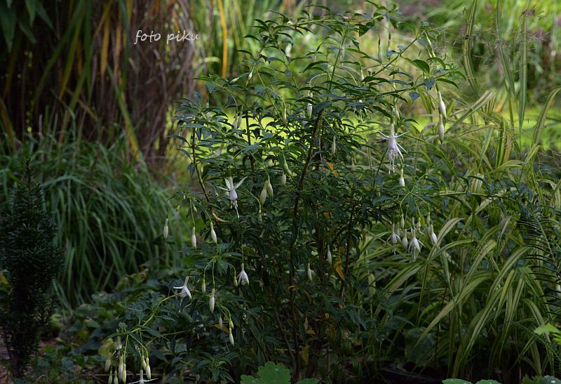 Pierwsza kwiaty rozwinęła Fuchsia magellanica 'Whiteknight's Pearl'