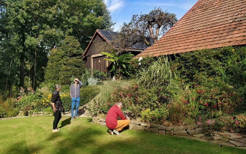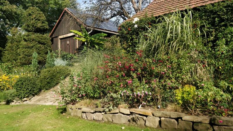 Ogród jest bardzo pięknie i gustownie zaaranżowany, i w niewiarygodny wręcz sposób utrzymany. Dawid uprawia mnóstwo roślin które wydawałoby się nie powinny zimować w naszych warunkach.