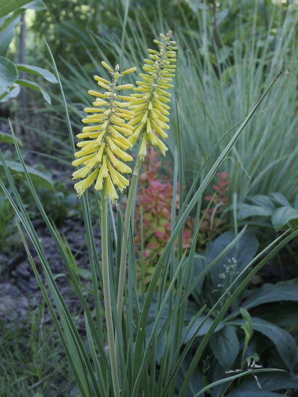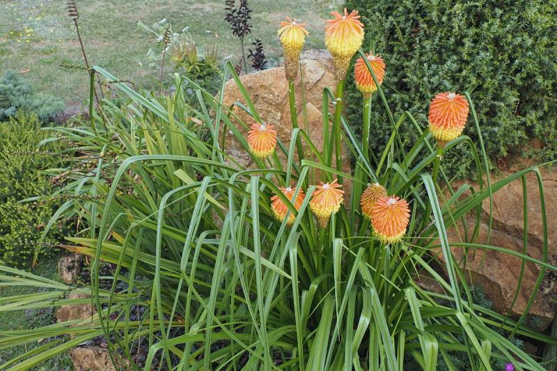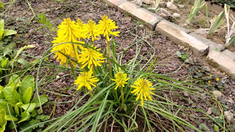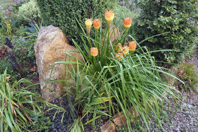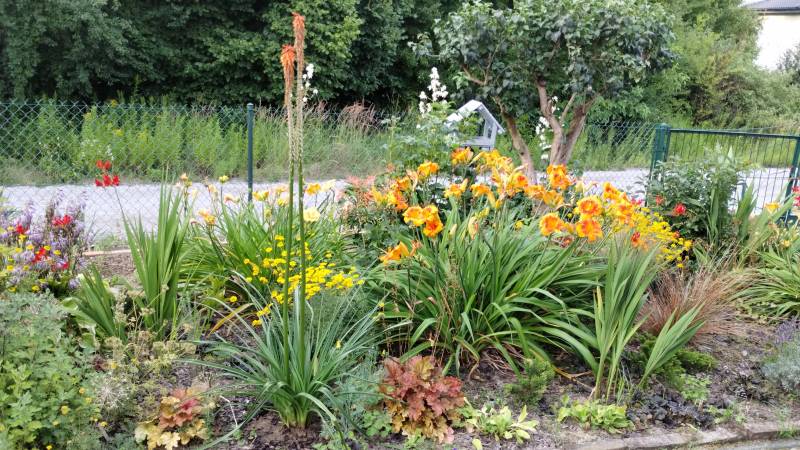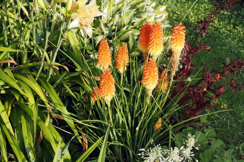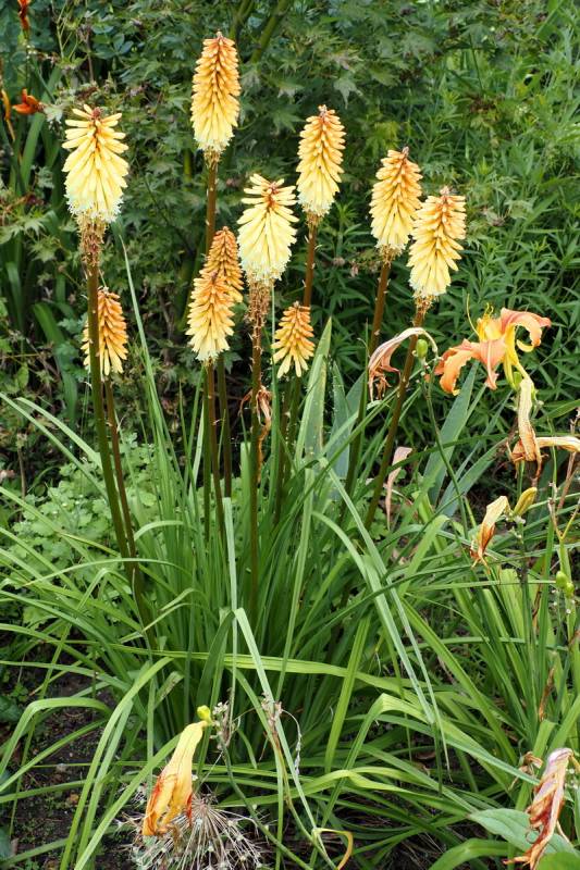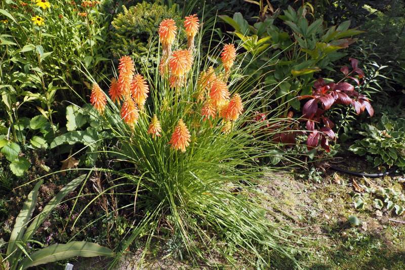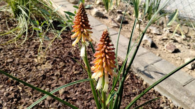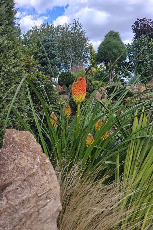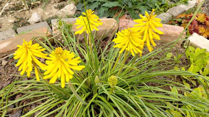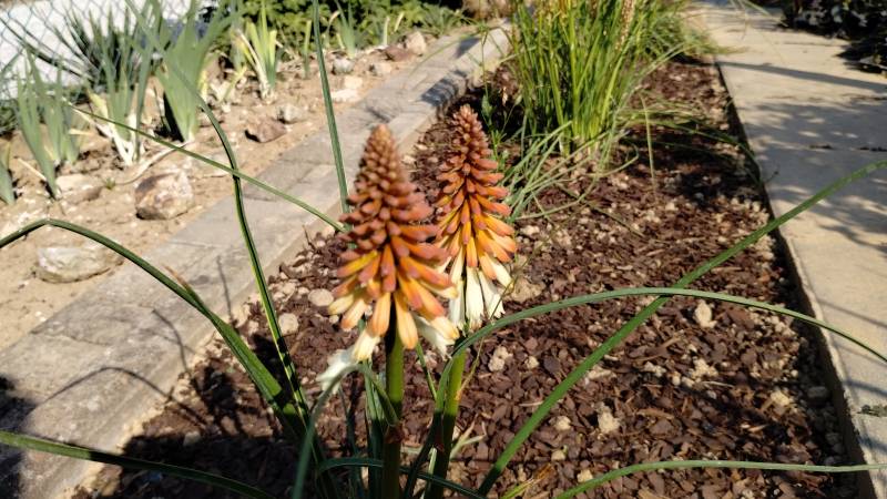 W międzyczasie musiałam przesadzić w inne miejsce niekwitnącą małą kępkę trytomy cytrynowej i stał się cud - to niekwitnące maleństwo w ciągu 2 tygodni dostało kopa i aktualnie wygląda tak: