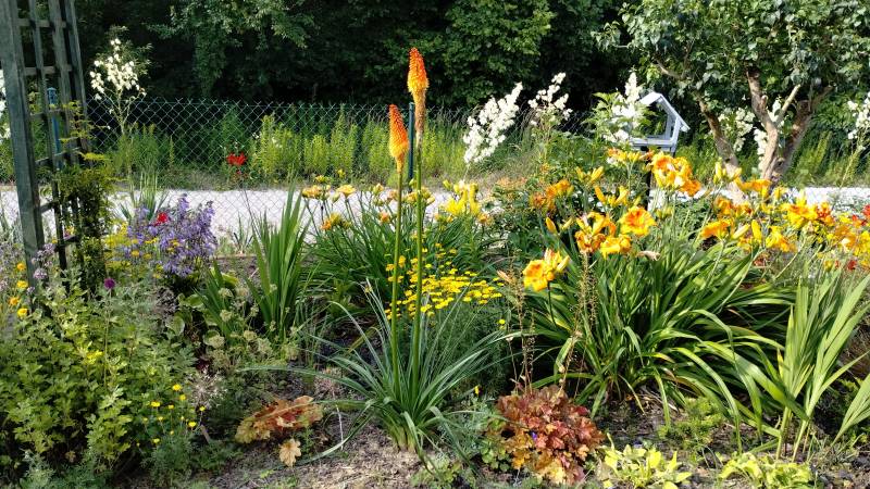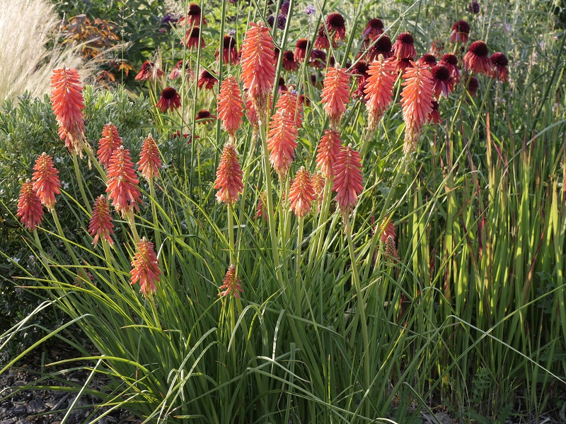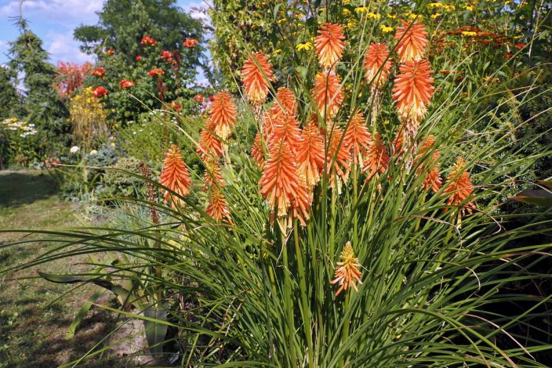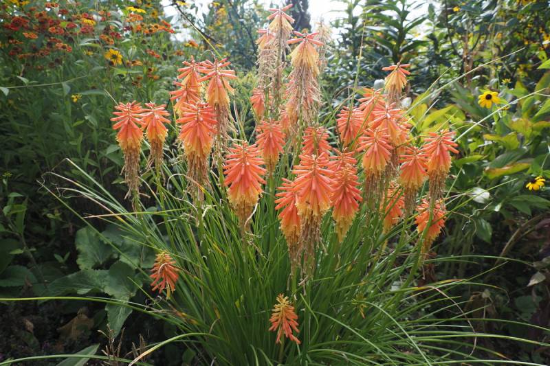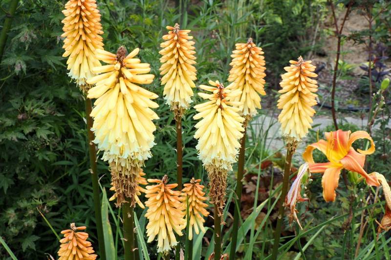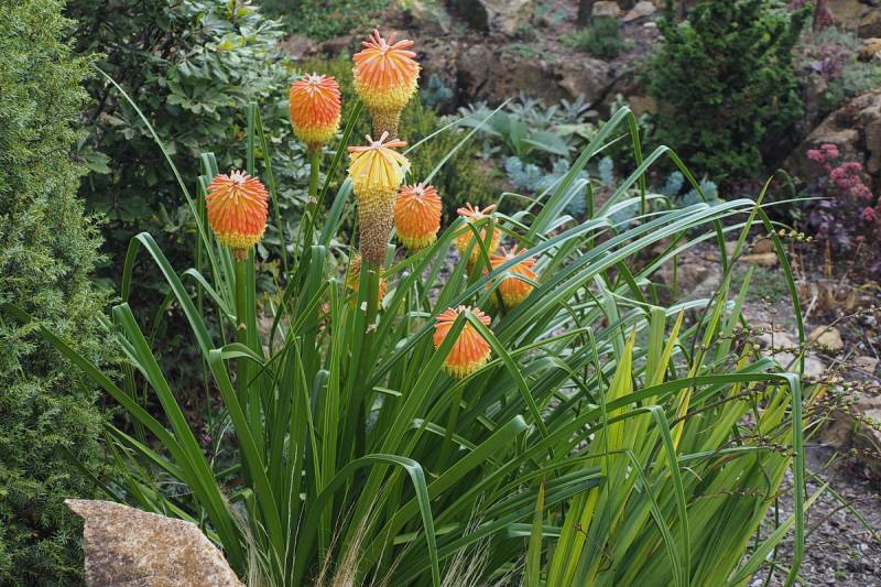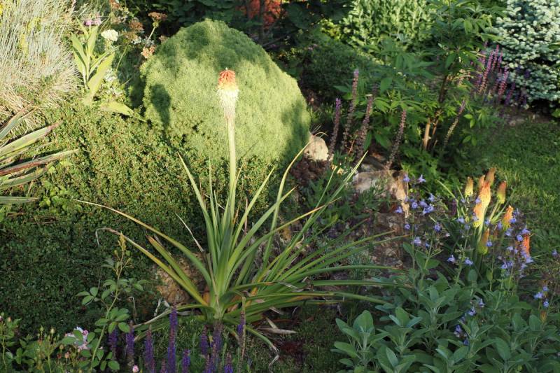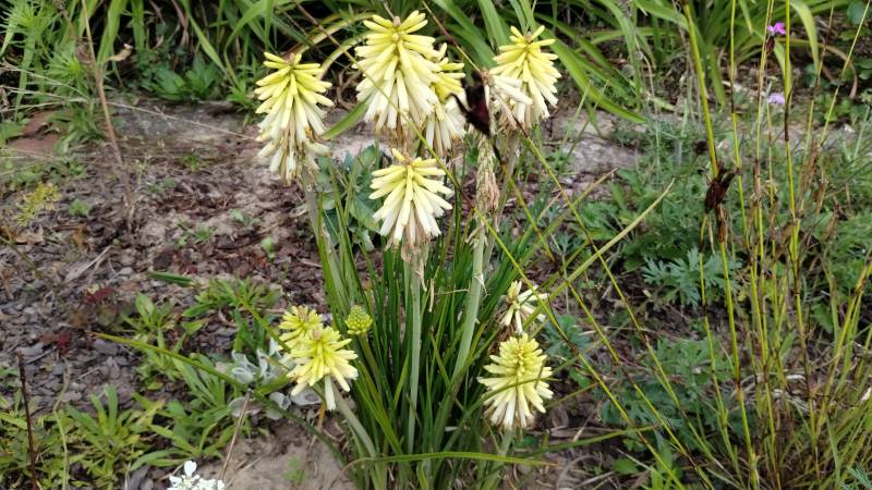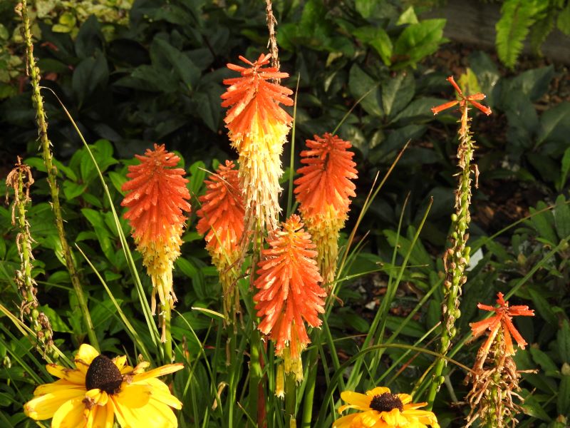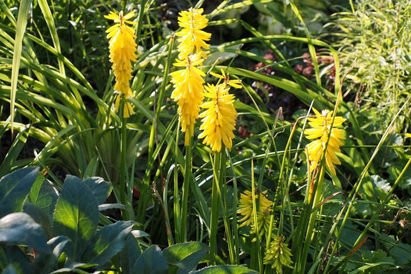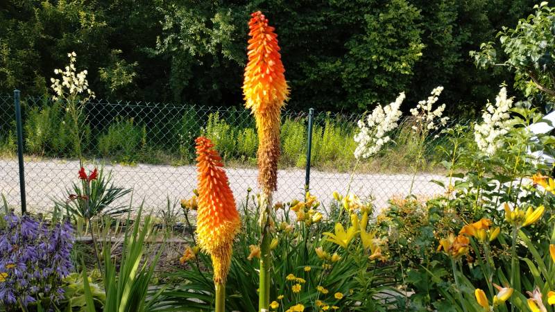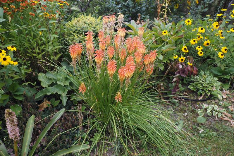 W międzyczasie musiałam przesadzić w inne miejsce niekwitnącą małą kępkę trytomy cytrynowej i stał się cud - to niekwitnące maleństwo w ciągu 2 tygodni dostało kopa i aktualnie wygląda tak: