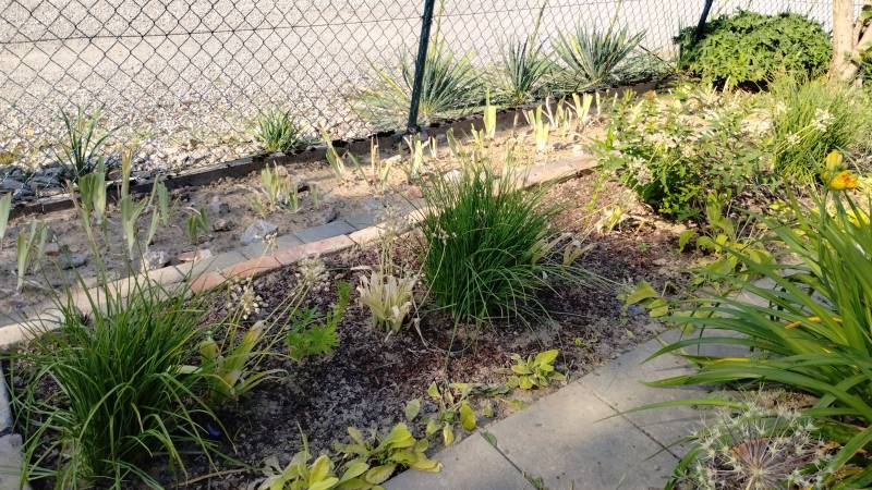 Przyszło mi do głowy, że może te wyżej wspomniane 4 kępy są za duże i potrzebują bodźca typu przenosiny lub podział. Zatem 5 dni temu każdą wykopałam, podzieliłam na 4-5 części i porozsadzałam, w tym 4 kępki znów w to samo miejsce. I proszę, po tych pięciu dniach, dziś wyglądają tak: