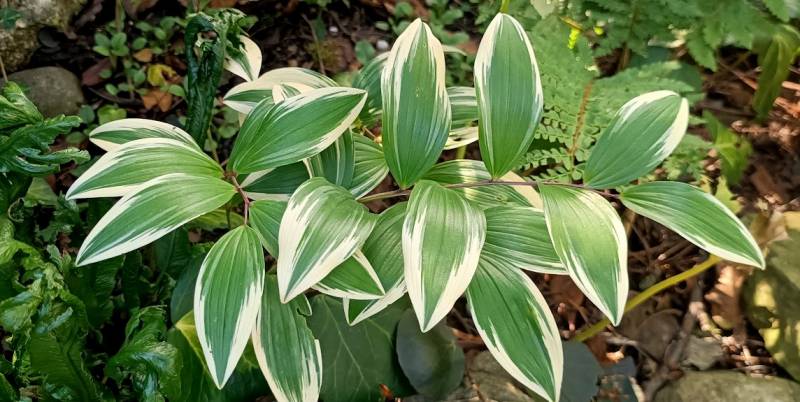 Polygonatum odoratum 'Shiro Kujaku' jest jedną z nielicznych kokoryczek , które nie zakwitły w tym sezonie.