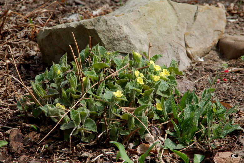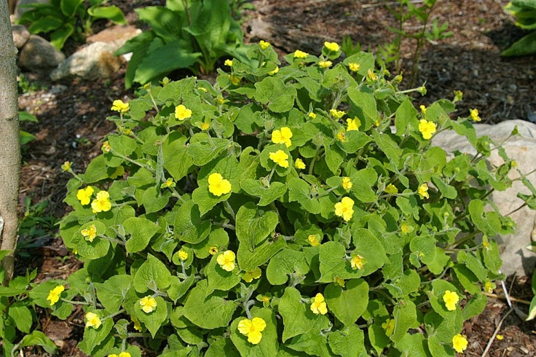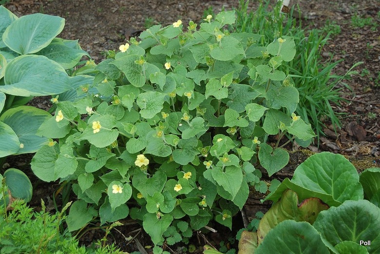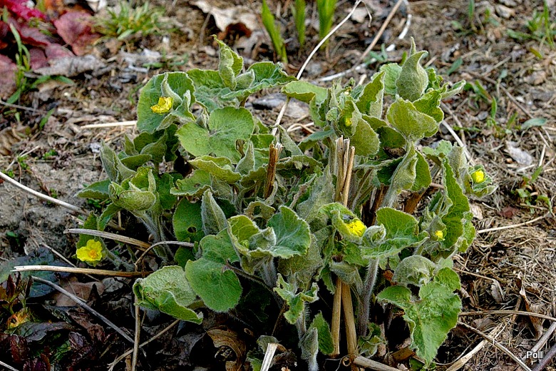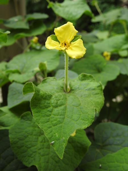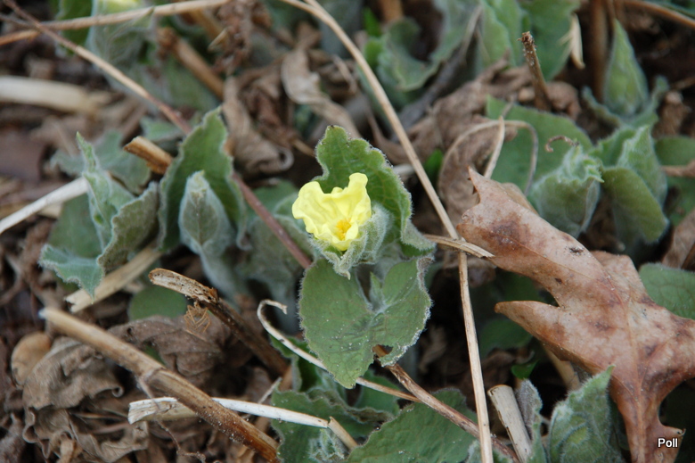 Kwiaty w kolorze żółtym mają po trzy pomięte płatki wokół żółtych pręcików. Wyrastają w kątach liści na średniej długości ogonkach.Kwitnie od kwietnia, powtarzając kwitnienie przez całe lato. Po kwitnieniu wytwarza nasiona.