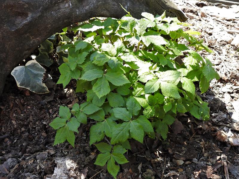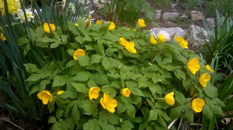 Hylomecon (fot. z 24 kwietnia). Rośnie w głębokim cieniu. Dopiero na zdjęciu zauważyłam, że ma już pączki.