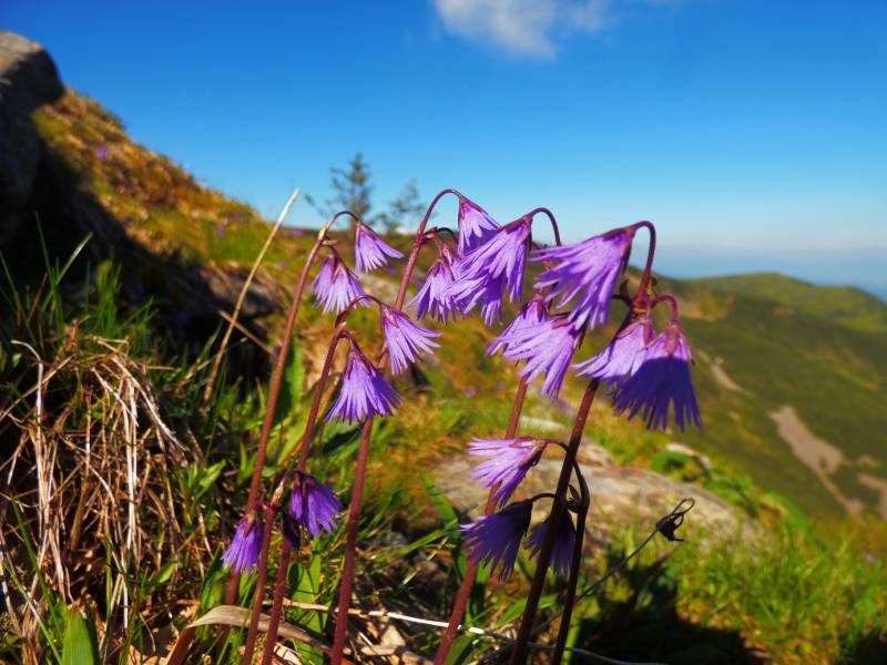 W terenach górskich, na rumowiskach skalnych, gdzie deszcz pada częściej niż na nizinach, a woda deszczowa nie robi zastoin, pojawiają się wiosną niebieskie lub jasno fioletowe, postrzępione brzegiem czapeczki na cienkich łodyżkach. Mają nie więcej niż 15-20cm wysokości, aby móc oprzeć się wiatrom wiejącym na gołych stokach. To urdziki. Roślinki te, o delikatnej budowie, ale dające sobie świetnie radę na swoich naturalnych stanowiskach należą do roślin pierwiosnkowatych.