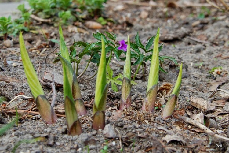 Żywiec gruczołowaty, rośnie u mnie od kilku lat pomiędzy paprociami. Ładnie się rozrósł. Liście rozwijają się wcześnie, bo już pod koniec marca. Nierozwinięte mają ciekawy purpurowo-fioletowy kolor.
