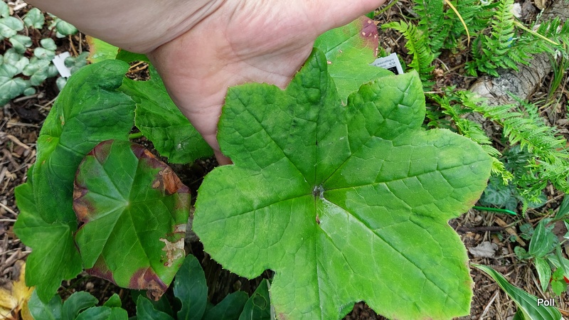 Podophyllum hexandrum 'Majus' straciło swoje ciemne, wiosenne barwy, baaaa, nawet nie wiem, kiedy zdążyło przekwitnąć. :dry:
