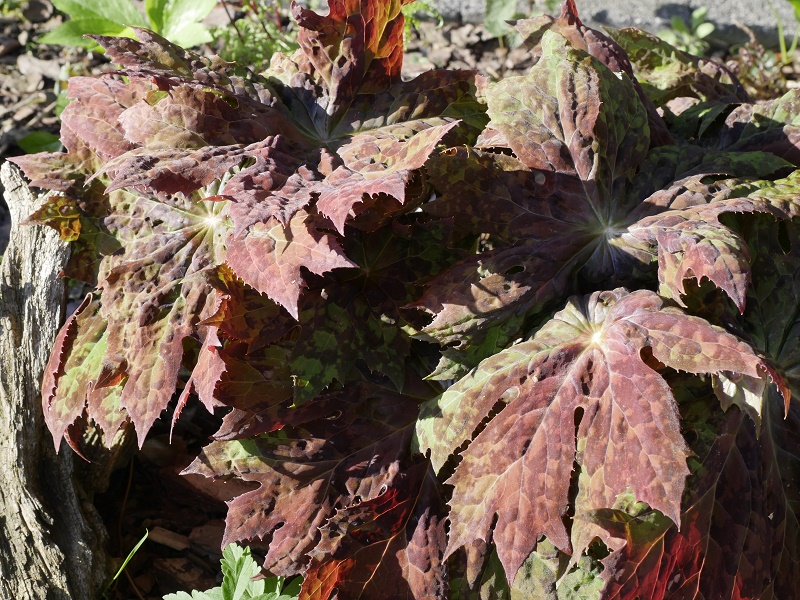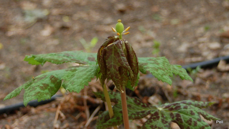 Podophyllum versipelle x P. delavayi - Navage Clone, udana hybryda. Dobrze przezimowała. Oby tak dobrze przyrastała jak jeden z rodziców. Chodzi mi o versipelle ;)