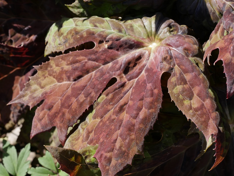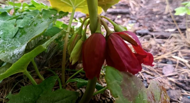 Dysosma pleiantha/ Podophyllum pleianthum ... w tym najwyraźniej chce zrekompensować swojemu panu wizualne straty