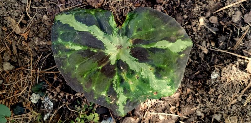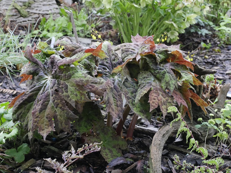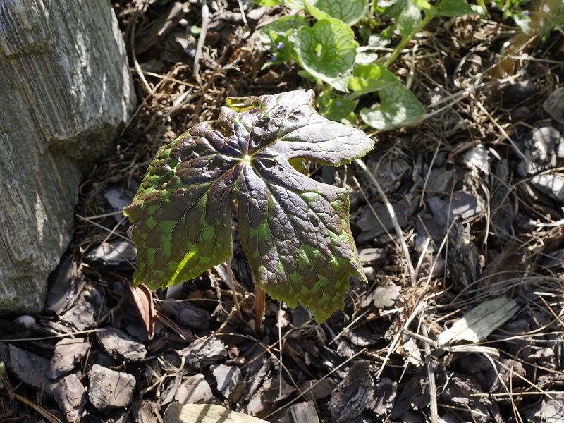 Dysosma majoensis najpierw podmarzł, potem reszta została pożarta przez ślimaki. :blink: Prawdę napisawszy, byłam pewna, że już po nim, ale nagle pojawiła się nowa parasolka.