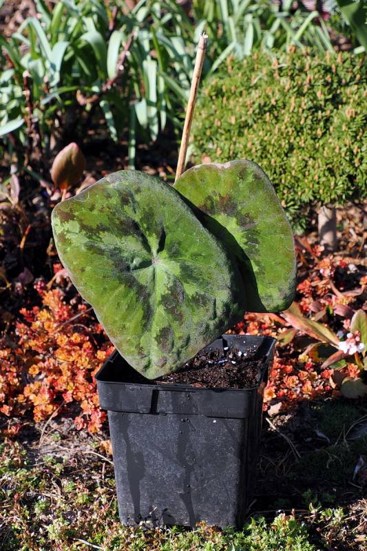 Podophyllum 'Purple Dyk' ... trochę zbyt wyrośnięty, usztywniłem go dzisiaj kijkiem i może przetrwa.