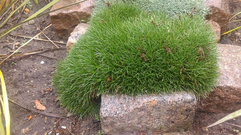 Jest to zimozielona krzewinka tworząca zaokrąglone poduszeczki w kolorze sino zielonym.