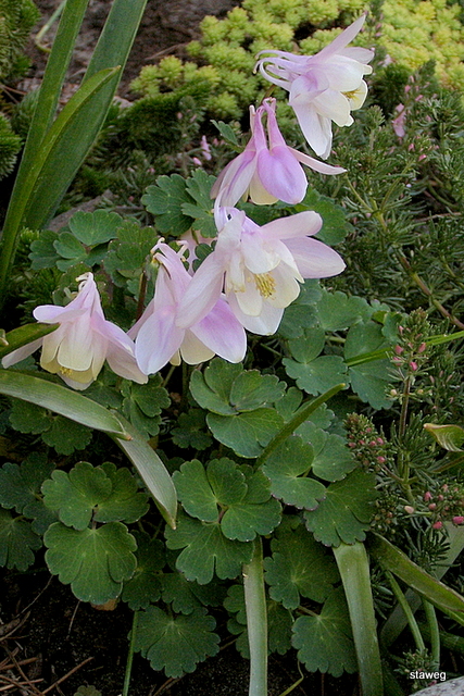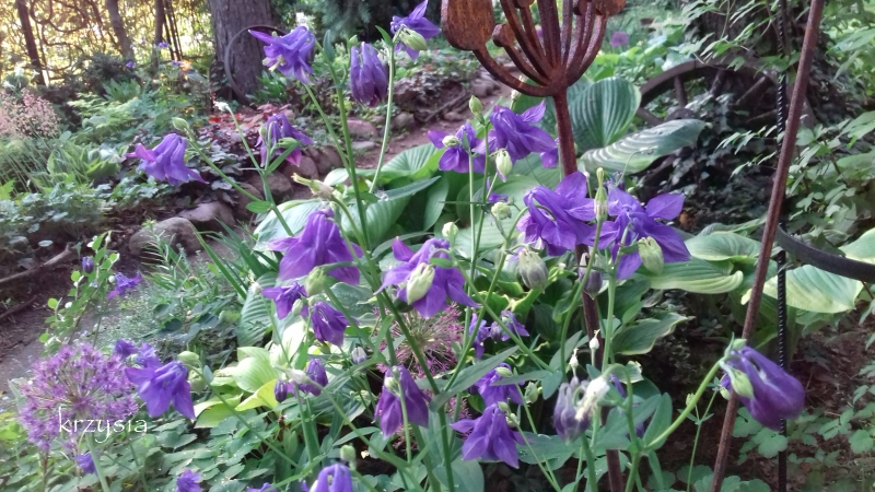 Moje orliki, to też samosiejki i podobnie, jak u Miłki, krzyzują się, dając nieraz ciekawe siewki. W niektórych miejscach je zwalczam, np na hostowiskach, gdy wysiewają się w kępach cennych roślin, natomiast w okolicach górki skalnej, czy w innych, niezagrazających hostom i paprociom, pozwalam się im wysiewać do woli.