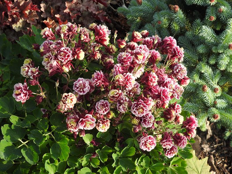 Pochodząca z Japonii niska odmiana orlika nadająca się do uprawy w pojemnikach i ogrodach skalnych.