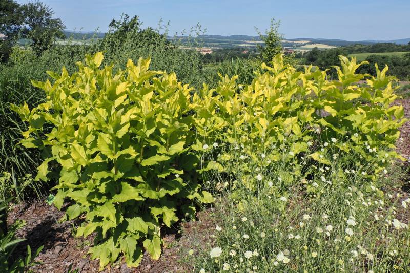 Rożnik przerośnięty The Holy Grail to ciekawa odmiana o limonkowo-żółtej barwie młodych liści.