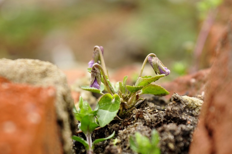 Viola jooi do końca sezonu są nieskazitelne, błyszczące i zebrane w ładne, foremne kępki skupionE przy ziemi. Kwiaty są jasnofioletowe, ale duże w stosunku do całej rośliny i pojawiają sie w sporej ilości w kwietniu i maju a nawet w czerwcu . Dodatkowym ich plusem jest przyjemny zapach, który wyczujemy, gdy zbliżymy się do rośliny na około 30-40 cm. W miejscu kwiatów zawiązują się owocniki, które pękając gwałtownie rozsiewają się , gdy trafią na podatny grunt. Nie jest to tak ekspansywny samosiew, jak na przykład fiołków Frackles