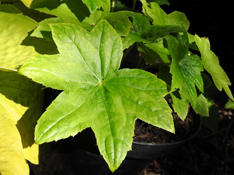 Peltoboykinia watanabei, nazywana bywa czasem starą nazwą Boykinia watanabei - pod taka nazwą ja ją właśnie kupiłam. Rodzaj Peltoboykinia został wydzielony z rodzaju Boykinia dlatego, że różni się od niej kształtem palczastych liści i kwiatami z 10 -cioma, nie 5 -cioma pręcikami.