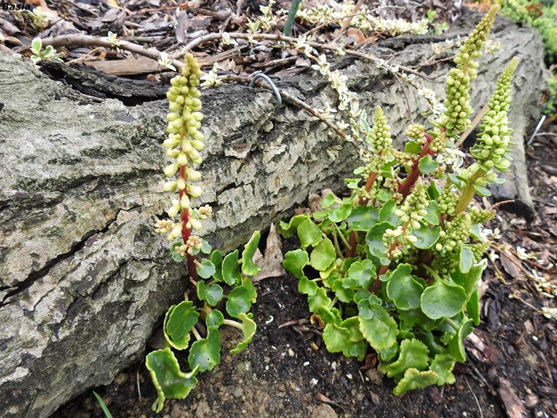 Wysokość: 15-30cm Liście: zielone, mięsiste, tarczowate z zagłębieniem w środku Kwiat: VI-VIII 8-10mm długości,dzwonkowaty, kolor zmienia się od zielonkawo kremowego do różowego Stanowisko: słoneczne lub półcieniste Gleba: przepuszczalna, wilgotna, kwaśna