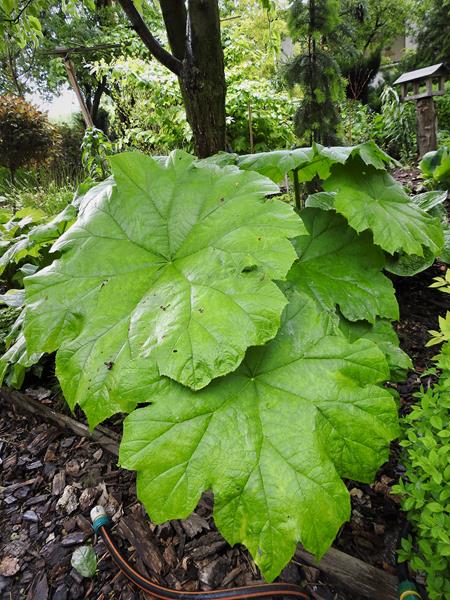 Próba usunięcia Rodgersji tarczolistnej/Tawułkowca tarczowatego , najwyraźniej pobudziło roślinę do rozwoju. Wyrosła duża jak nigdy dotąd, całkiem zagłuszając posadzone na jej miejscu paprocie think: .