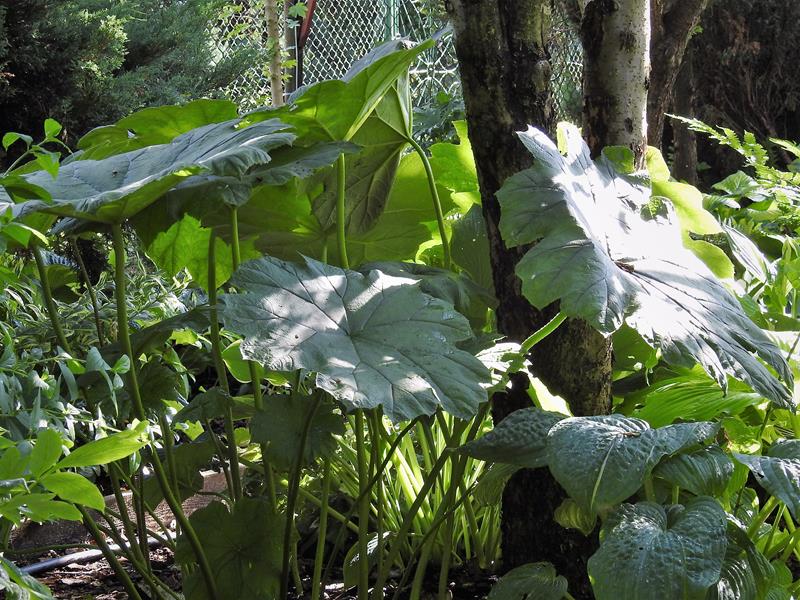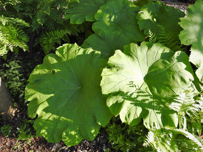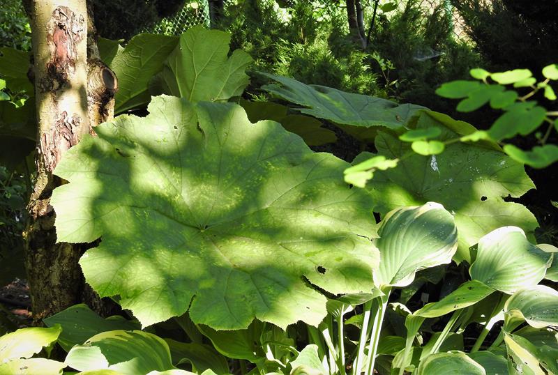 W starej części wojsławickiego arboretum, w cienistych zakamarkach, między ogromnymi rododendronami rodgersja stopowcolistna osiąga gigantyczne rozmiary.