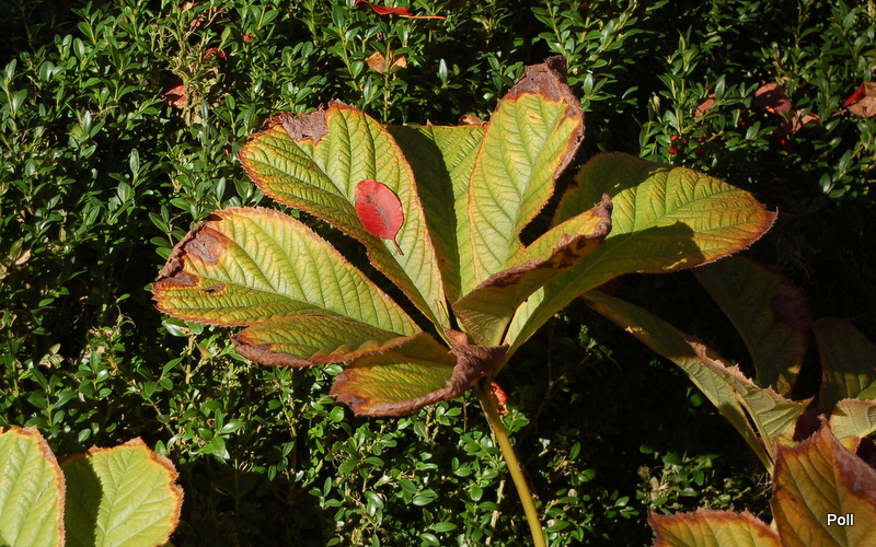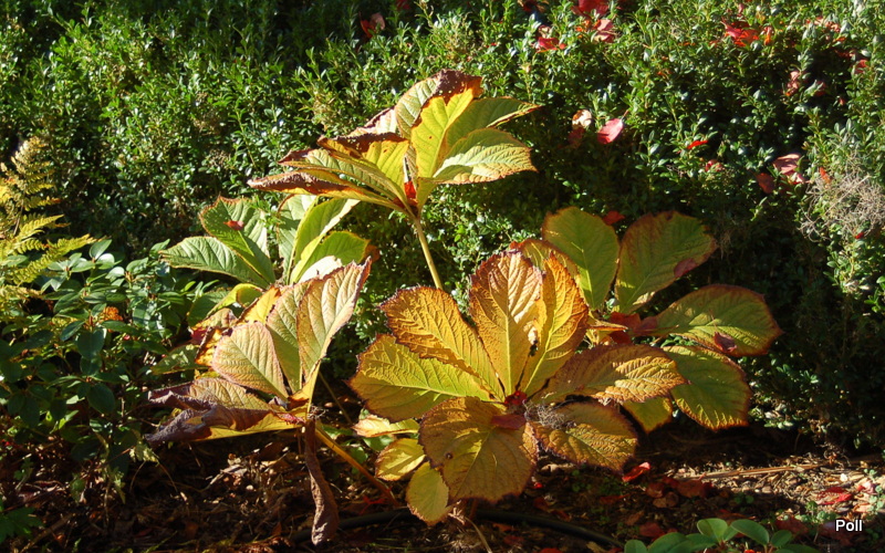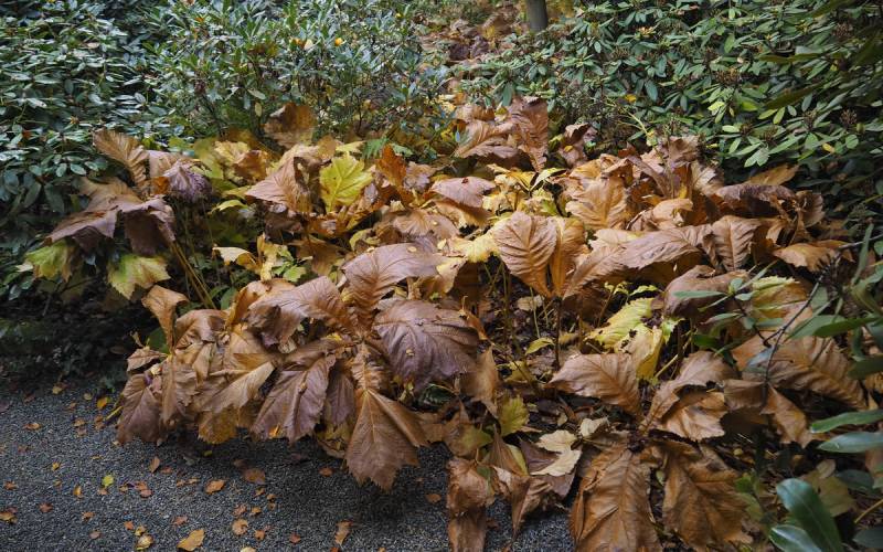 Rodgersja tarczolistna powoli układa się do zimowego snu, choć przymrozków jeszcze u mnie nie było.