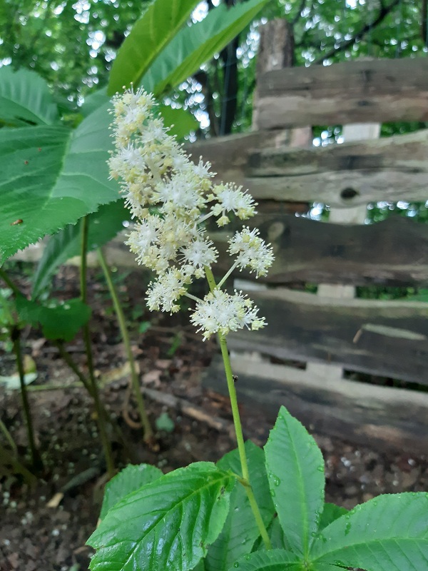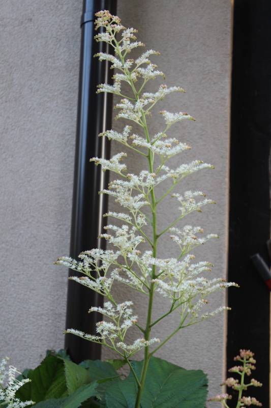 Właśnie kwitnie rodgersja pierzasta Hercules. Kwiaty ładnie pachną :kocham Sceneria mało naturalistyczna, ale jest, jak jest ...