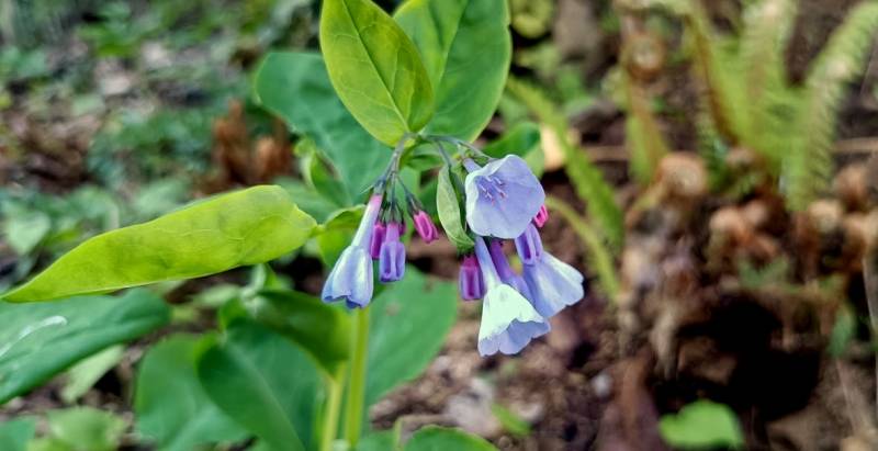 Mertensia virginica - mertensja wirginijska, myślałem, ze całkiem przepadła bo długo nie wznawiała wegetacji, ale szybko nadrobiła i rozpoczyna kwitnienie,