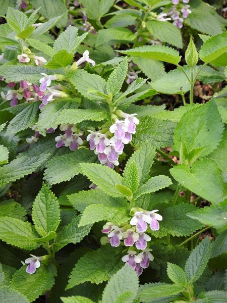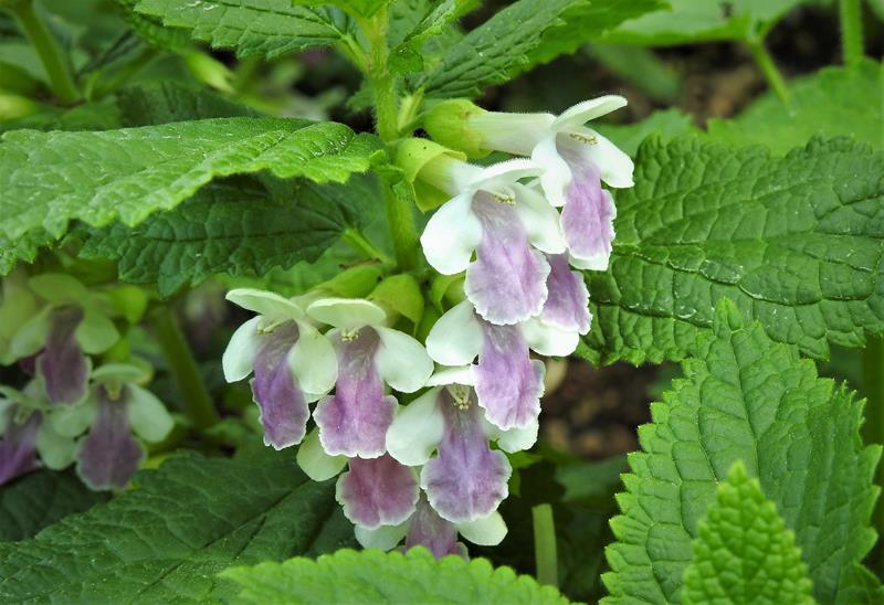 Miodownik melisowaty (Melittis melissophyllum) rosnący na półcienistym stoku w Aboretum w Wojsławicach.