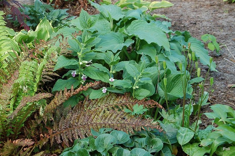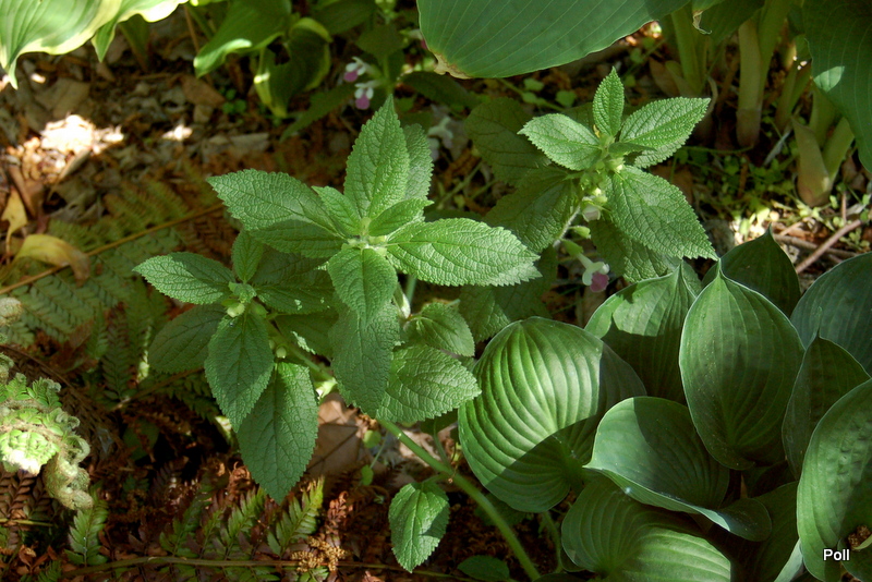 Miodownik melisowaty rośnie w moim ogrodzie w kilku miejscach, ale najlepiej rozrasta się a nawet sieje w lekkim półcieniu, na stale wilgotnym, przepuszczalnym stanowisku. Jak widać na zdjęciach, za towarzystwo ma inne rosliny cieniolubne np hosty i paprocie.