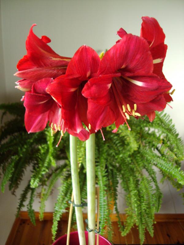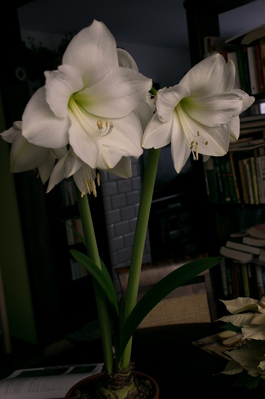U mnie niezawodne H.vittatum, kwitło latem w ogrodzie, a teraz w domu powtórka. Inne cebule nie zdradzają się z zamiarami. wink-3