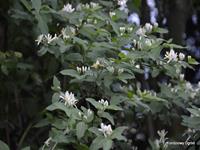 Kwiaty, białe o rurkowatym kształcie, małe, ale gęste, rozmieszczone równo parami,