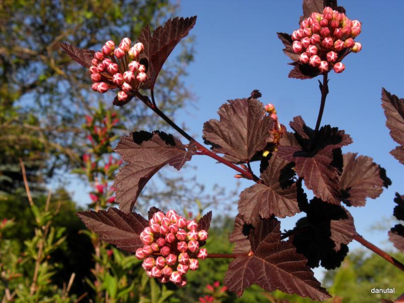 Pęcherznica kalinolistna 'Diabolo' całkiem nieźle wyrośnięta, od dołu zmuszony jestem ją przycinać.