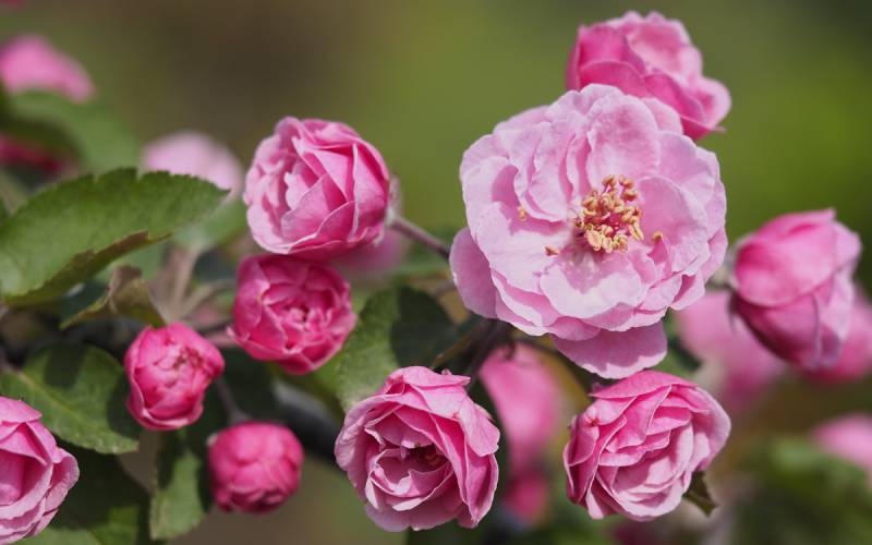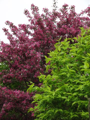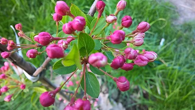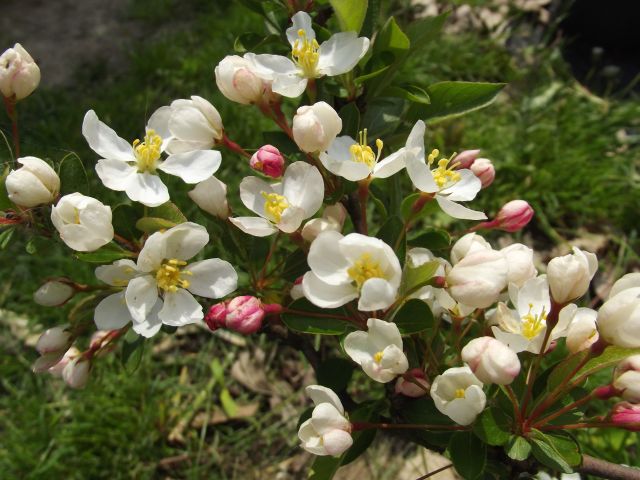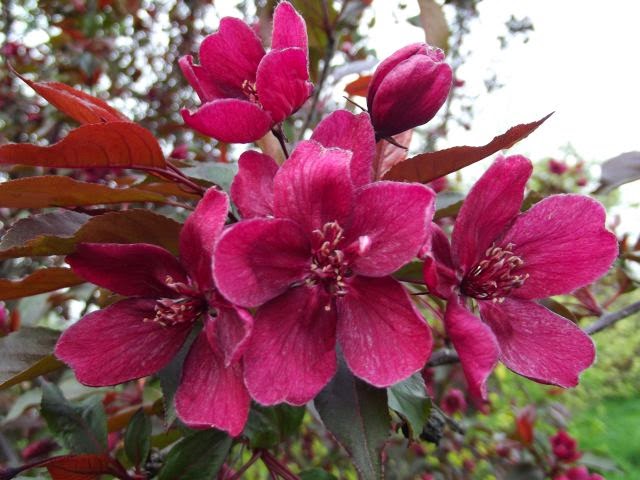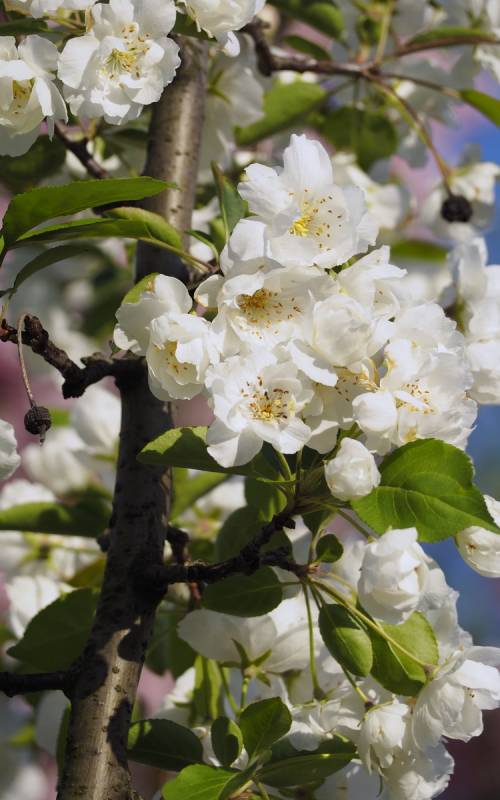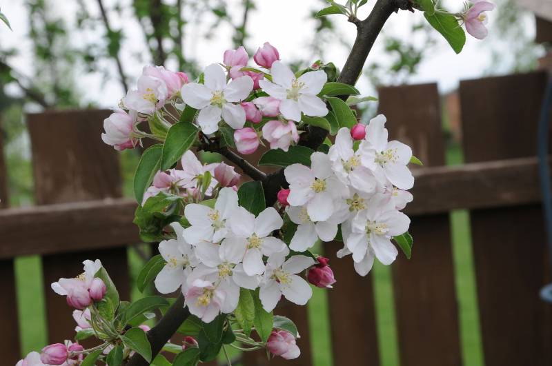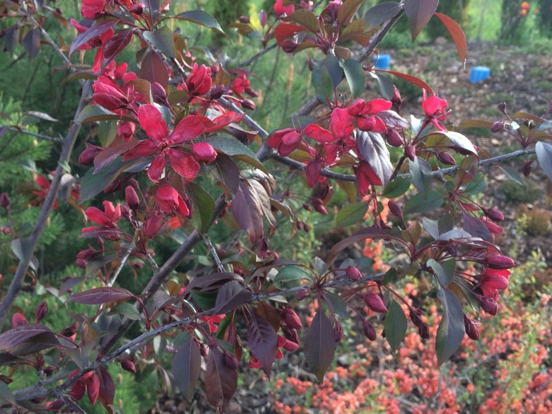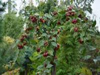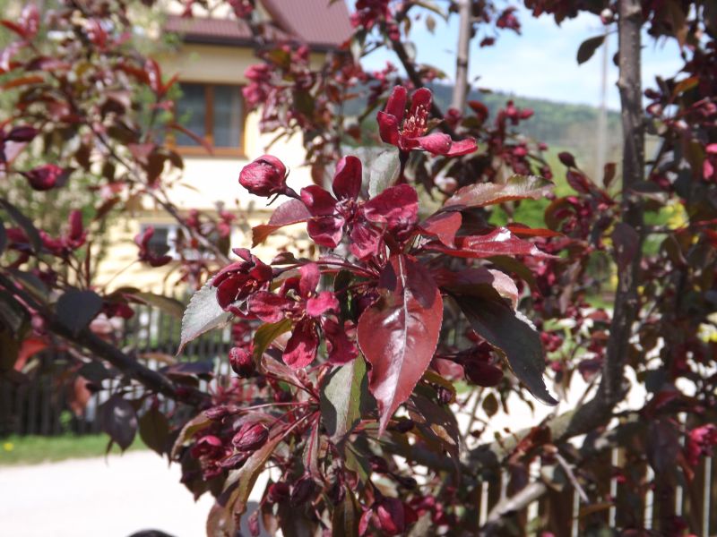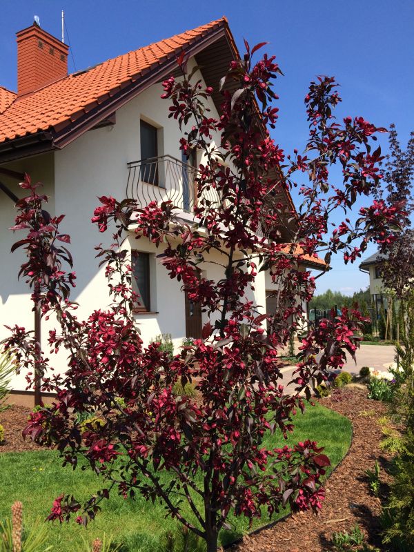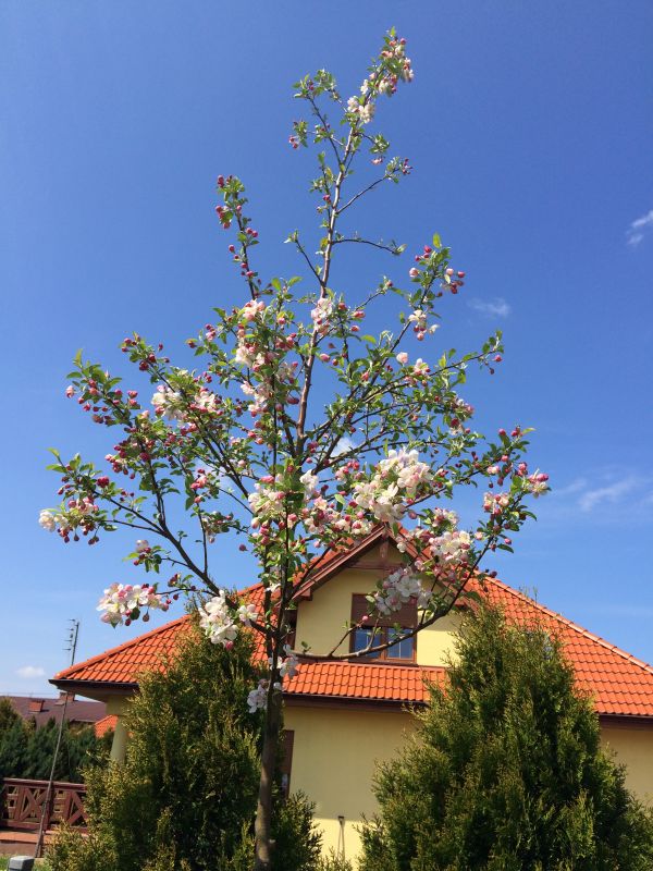 Jabłoń Royalty- dorasta do ok 4-6 m szerokości i wysokości. Kwitnie obficie i tak też owocuje, chociaż u tej odmiany jabłuszka przypominają raczej wisienki