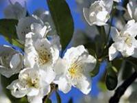 Jabłoń Evereste, korona piramidalna, kwiaty białe.
