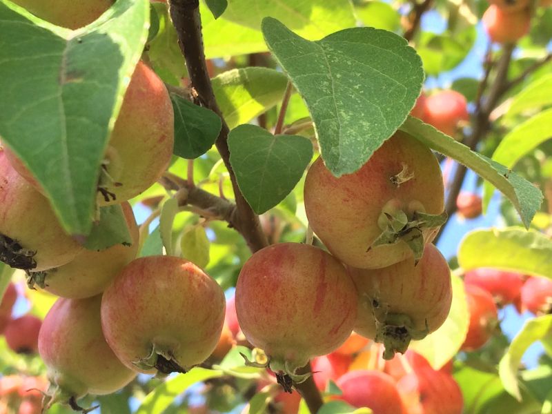 i dzisiejsze jabłuszka. Owoce nieco większe niż u Royalty, na krótkich szypułkach gęsto upakowane. Początkowo zielone, z biegiem czasu coraz bardziej wybarwiają się