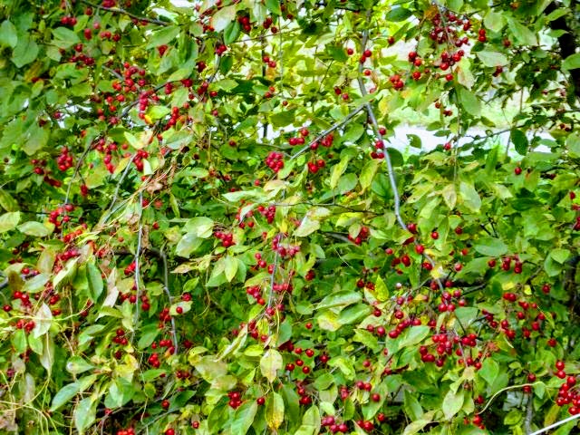 i jabłonkowe wisienki w lipcu. Na długich szypułkach, luźno wiszące. Od początku w odcieniu bordo
