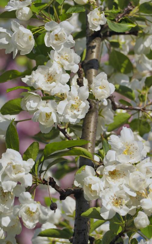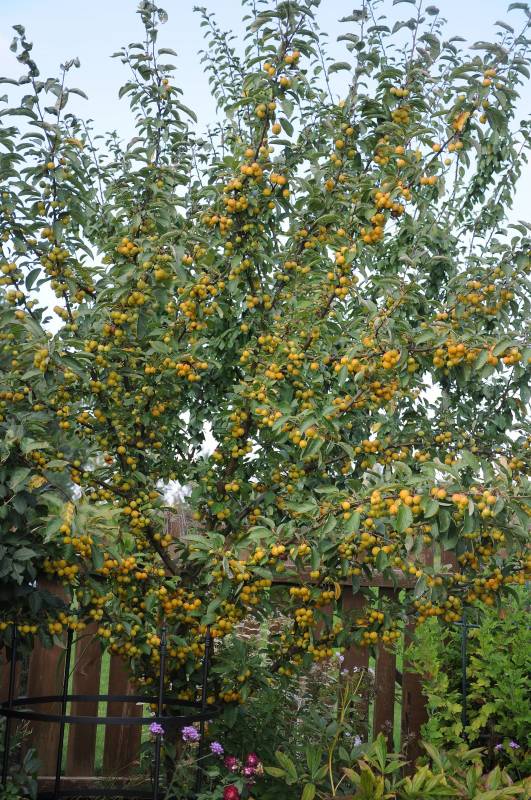 Jabłoń Royalty- dorasta do ok 4-6 m szerokości i wysokości. Kwitnie obficie i tak też owocuje, chociaż u tej odmiany jabłuszka przypominają raczej wisienki