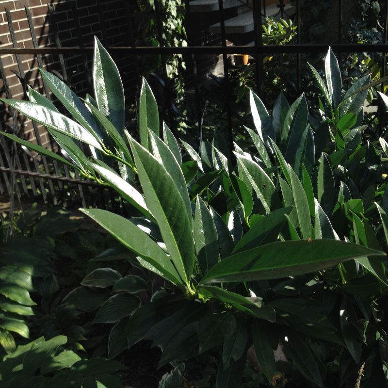 Eliptyczne, grube, skórzaste i całobrzegie, ułożone skrętolegle. Ciemnozielone i błyszczące z wierzchu, od spodu blade lub żółtozielone. Dorastają do 20 cm długości. Przypominają liście laurowe, stąd pochodzi nazwa laurowiśnia).