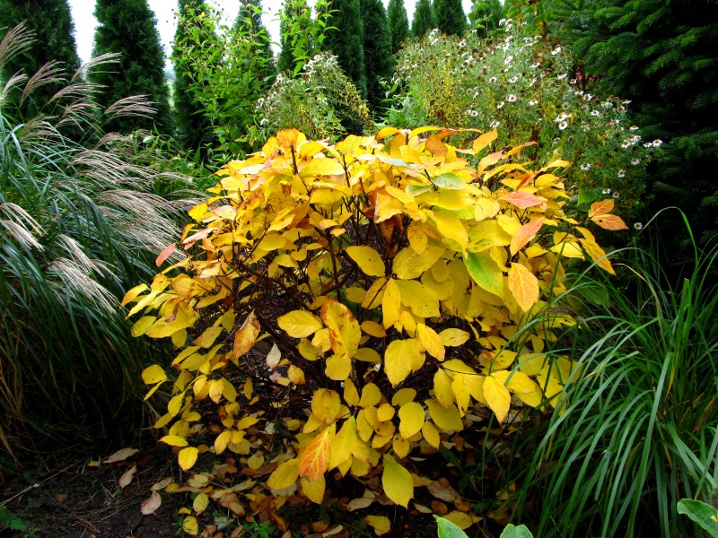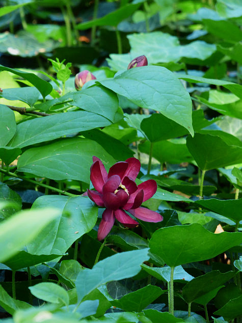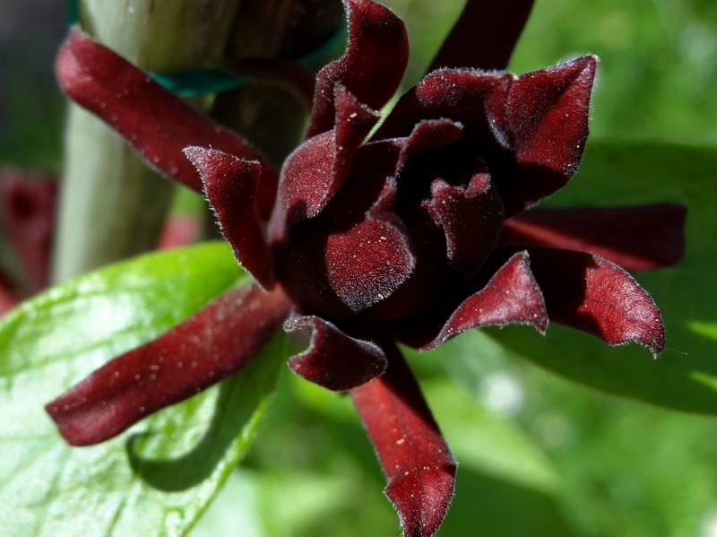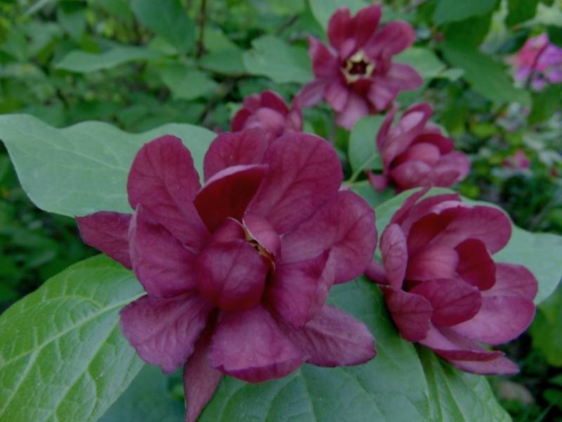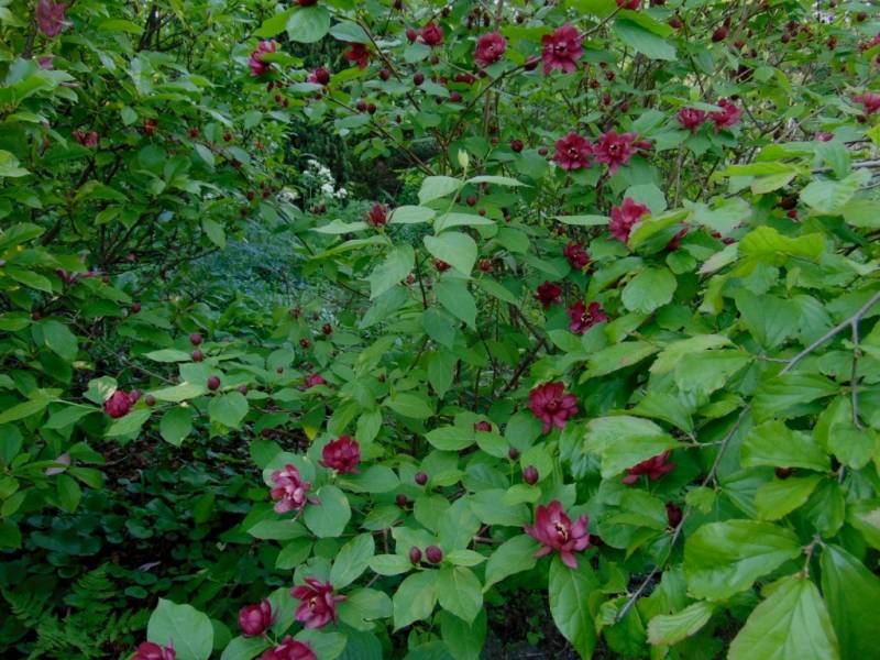 Calycanthus floridus). Ten interesujący, choć dość rzadko spotykany w ogrodach krzew ozdoby, posiada nie tylko ciekawe kwiaty i przebarwiające się jesienią na żółto liście, ale też zachwyca dość mocnym, charakterystycznym aromatem, przypominającym zapach jabłek i goździków.