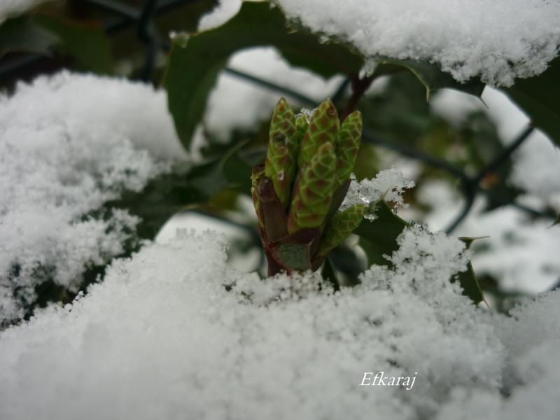 Duża część kwiatów i pąki kwiatowe mahonii pośredniej wytrzymały -5C i wg prognoz będzie ona kwitła co najmniej do Nowego Roku. A już kwitnie przez grubo ponad miesiąc.
