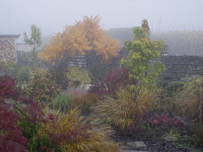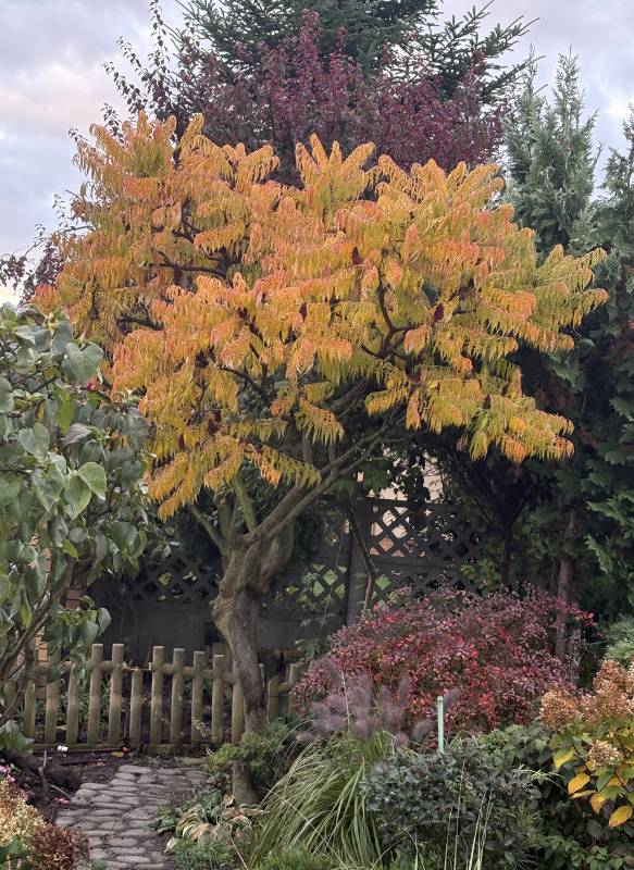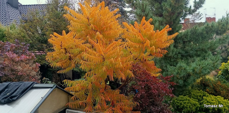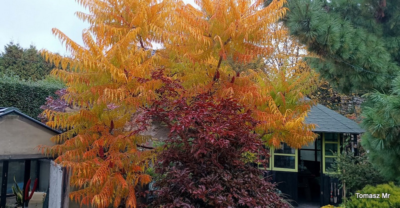 Najlepiej jak nie będę zaglądać jesienią do tego wątku, bo żal d... ściska U mojego 'Tiger Eyes' brązowe liście już smętnie zwisają (zresztą jak co roku) Tylko na końcach gałęzi widać jakiś jesienny kolor