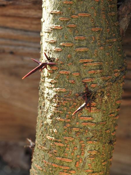 Kora i ciernie na pniu glediczji trójcierniowej 'Emerald Cascade'