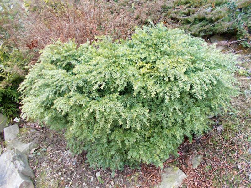 Karłowa odmiana o nieregularnym pokroju przyrastająca rocznie ok. 5 cm.