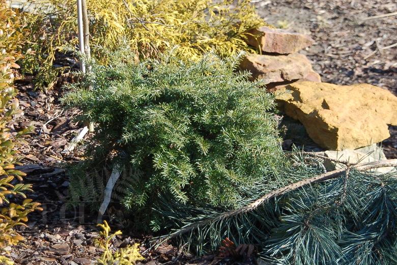 Interesująca, karłowa odmiana o krótkich, dość grubych, ciemnozielonych igłach i nieregularnym pokroju.